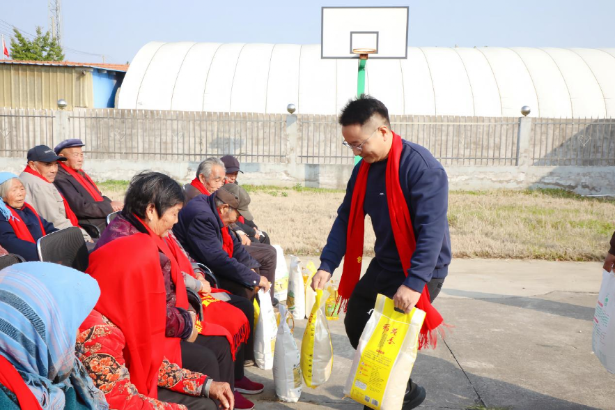 活动现场,工作人员和志愿者们将米、面、油等生活物资送到老人手中。询问他们的身体状况和生活需求,叮嘱他们注意防寒保暖、保重身体。