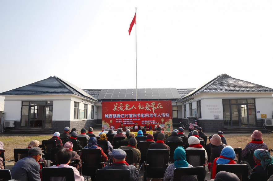 “关爱老人 让爱常在”,10月28日上午,赣榆区城西镇在滕庄村开展重阳节慰问活动,为辖区内的老人送去节日的祝福与温暖。